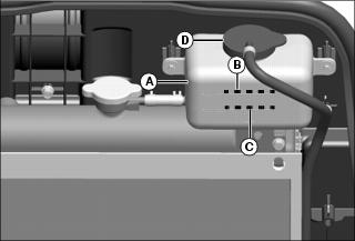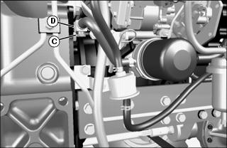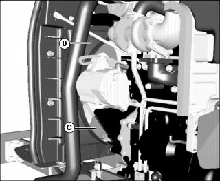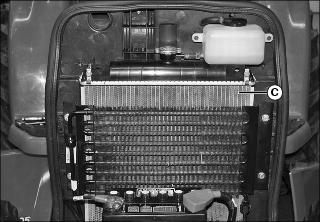 5. Remove all dirt and debris from radiator fins (C), and fan shroud (D) using compressed air or water.