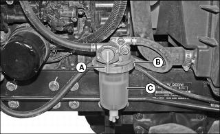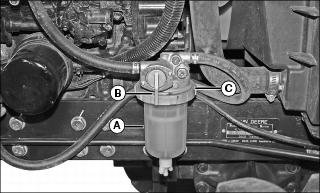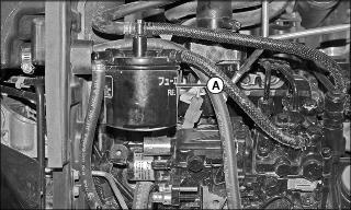 4. Position drain pan under fuel filter (A) to catch fuel spillage.