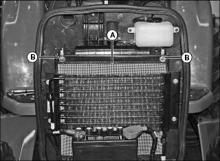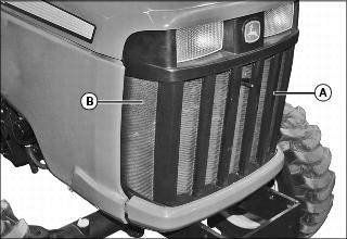 1. Check grille (A) and side screens (B), on both sides, for dirt, grass clippings and debris.
