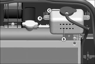 5. Check oil level on dipstick. Oil level should be between levels (B) and (C) on dipstick.