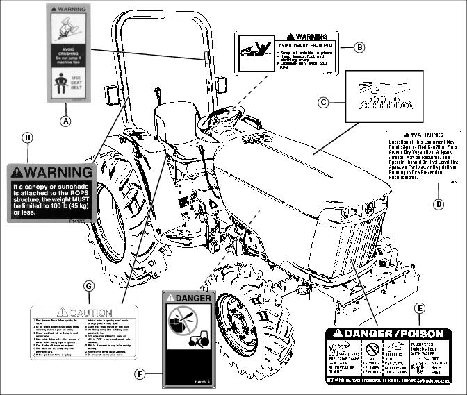 If a canopy or sunshade is attached to the ROPS structure, the weight MUST be limited to 100 lb (45 kg) or less.