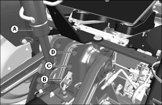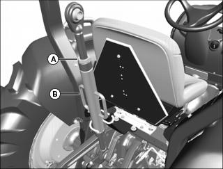 Step (A) is located on the left side of machine. Use step for entering and exiting the operator station.