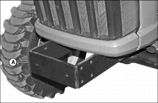 An optional front weight bracket extension kit (A) is available at your John Deere dealer. This optional front weight bracket extension kit will hold up to ten Quick-Tatch weights.