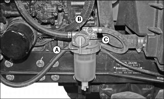 1. Locate the fuel shut-off valve on the right side of the machine on the fuel sediment filter.