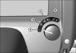 A-Warning Flasher/Turn Signal Indicator Light: These indicator lights will turn on and flash when the light switch is turned to one of the two warning flasher positions, or the turn signal switch is in the right or left hand turn position.