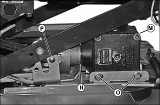 14. After first installation, tighten carriage bolts (P) on PTO coupler support.