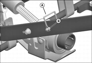 5. Place pins (A) in forward storage holes (B) in lift link.