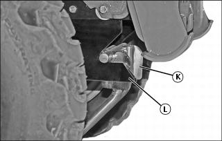 11. Make sure forward lift link (K) is nested into hangers (L).