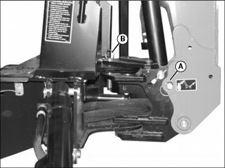 5. If not already done, install boom lock pin (A) and swing lock pin (B).