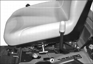 2. For tractor operation, pull up on seat rotating lock lever (A) and rotate seat clockwise 180° to front facing position. Seat will lock into place.
