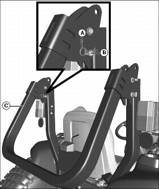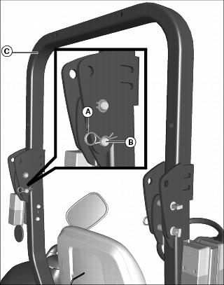 2. Carefully raise ROPS crossbar (C) to the operating position.