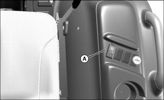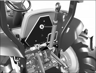 Step (A) is located on the left side of machine. Use step for entering and exiting the operator station.