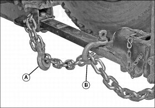 • Position machine on trailer so hood or engine cover opens from rear of trailer to prevent wind from blowing hood or cover open.