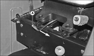 An optional front weight bracket extension kit (A) is available at your John Deere dealer. This optional front weight bracket extension kit will hold up to ten Quick-Tatch weights.