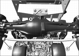 Picture Note: Shown with foot deck removed. Lubricating Hydraulic Selective Control Valve (SCV) LinkagePicture Note: Shown with access cover removed. • Lubricate SCV linkage (A) and SCV lock lever (B) with SUPER LUBE lubricant. Lubricating 3-Point Hitch |