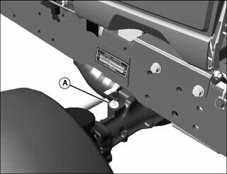 2. Loosen and remove dipstick (A) located on right side of front axle.