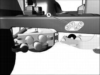Front weight bracket (A) is an integral part of the machine frame. The bracket will hold up to five Quick-Tatch® weights.