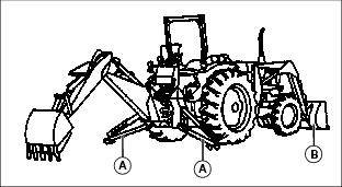 1. Lower backhoe stabilizers (A), and loader bucket (B) to ground.