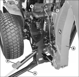 IMPORTANT: Avoid damage! Always check tractor hydraulic fluid level before operating backhoe.