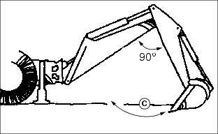 1. Put dipperstick at correct angle to boom for digging, approximately 90 degrees.