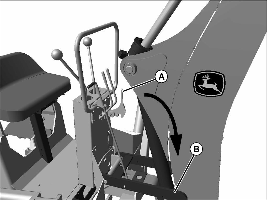 3. Stand in area between right stabilizer leg (A) and boom (B), facing the tractor.