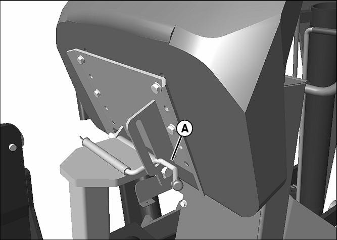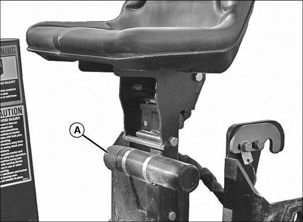 485 backhoe: Lift up on seat to pivot forward until handle (A) locks into cutout area.