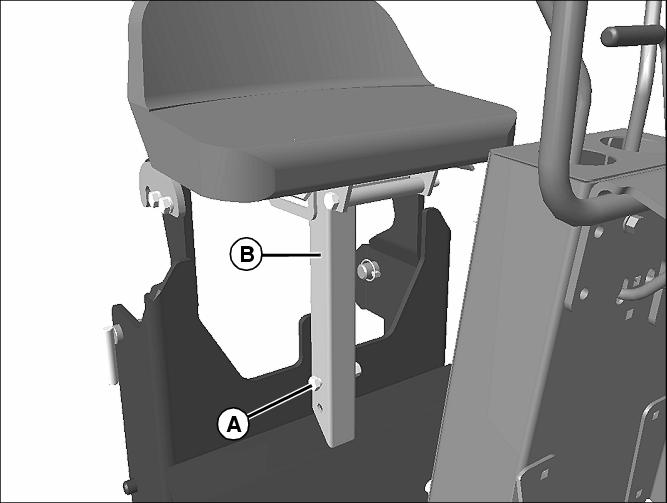 2. Install seat in one of the available positions. Make certain operator can reach controls and knees clear boom when it is in extreme left and right swing positions.
