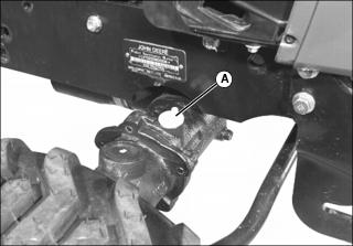 2. Loosen and remove dipstick (A) located on right side of front axle.