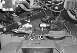 11. Make sure forward lift link (J) is nested into hangers (K).