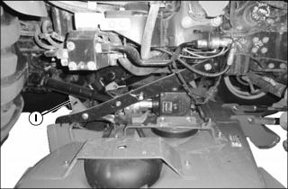 9. Dismount tractor and ensure locks (I) on both sides have dropped to locked position shown. Mower may sometimes have to be pulled rearward slightly to engage lock. On first installation, mower may not lock in position if front link is too short.
