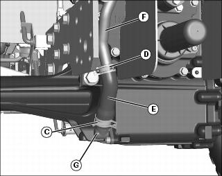 7. Remove hose (E) from suction pipe (F) and lower manifold (G).