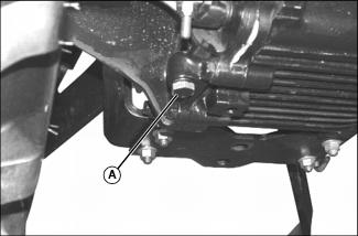 2. Loosen and remove dipstick (A) located on right side of front axle.
