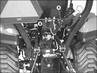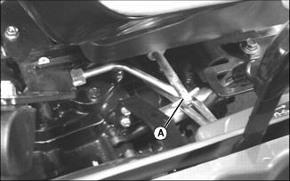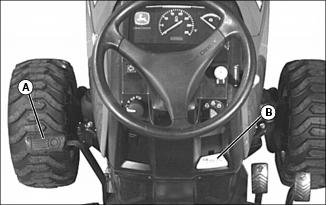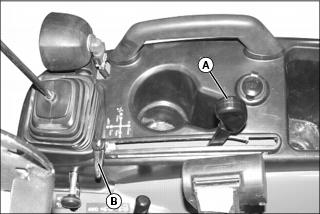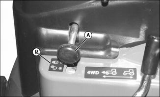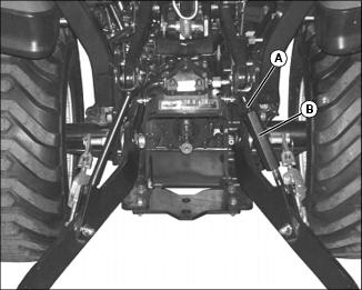 Use mower height control knob (A) to adjust mower cutting height, and lock mower lift kit rear draft arms in raised or transport lock position. See your mower deck operator’s manual for instructions.