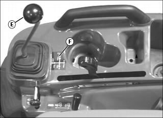 E - Engine Coolant Temperature Gauge - This gauge indicates the temperature of the cooling system. If the gauge needle reaches the red range, the engine is overheating and PTO will automatically disengage.