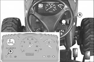 L - PTO Indicator Light - This light will turn on when the the PTO is engaged. Light will blink when Reverse Implement Option (RIO) is engaged.