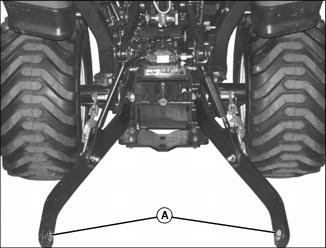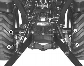 2. Connect safety chains to the lower draft arm crossbar and to the towed load. Provide only enough slack to permit turning.