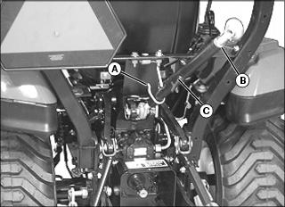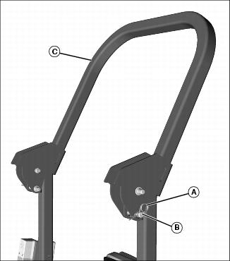2. Carefully raise ROPS crossbar (C) to the operating position.