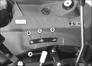 Front weight bracket (A) is an optional bolt-on to the machine frame. The bracket will hold up to seven Quick-Tatch™ weights.