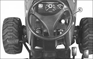 c CAUTION: Avoid injury! Do not attempt to adjust the steering wheel while the machine is moving. The operator can lose control of the machine.