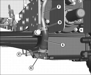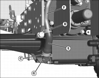 7. Remove hose (E) from suction pipe (F) and lower manifold (G).