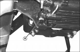 2. Loosen and remove dipstick (A) located on right side of front axle.