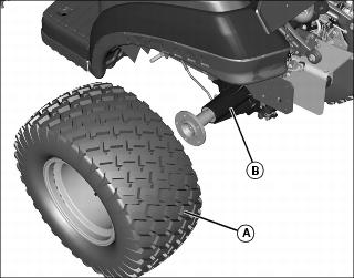 3. Raise rear of machine, and remove left rear wheel (A).