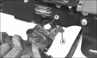 8. Remove dipstick (C) located on right side of front axle and vent plug (D).