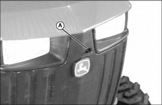 3. Remove bolt (A) and nut, retaining the side panel to machine.