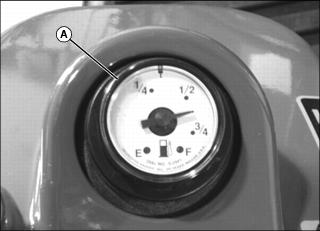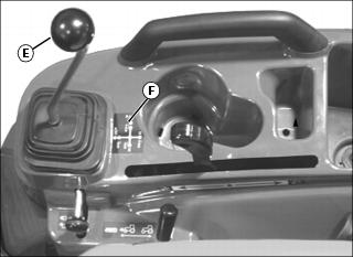 E - Engine Coolant Temperature Gauge - This gauge indicates the temperature of the cooling system. If the gauge needle reaches the red range, the engine is overheating and PTO will automatically disengage.