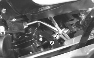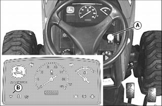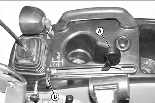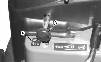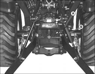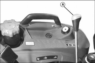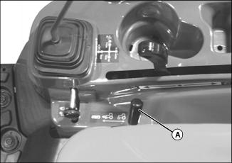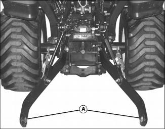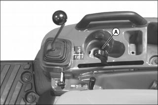 Use mower height control knob (A) to adjust mower cutting height, and lock mower lift kit rear draft arms in raised or transport lock position. See your mower deck operator’s manual for instructions.