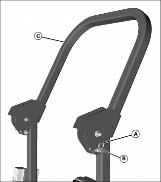 2. Carefully raise ROPS crossbar (C) to the operating position.