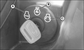 C - START Position - Move key from ON to this position and the starter will engage the engine flywheel to start the engine. Release the key to the ON position.