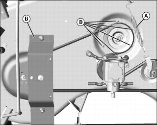 • 60D mower: Remove six bolts (D) on sheave(s) to be replaced.