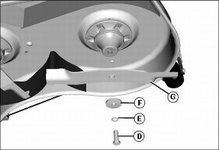 • 60D - Remove bolt (D), washer (E), washer (F) and blade (G).